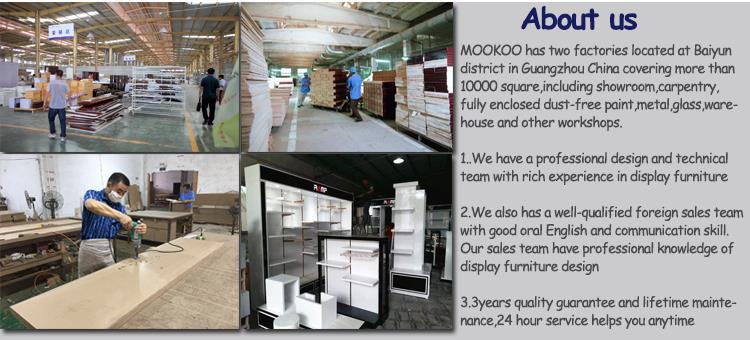 MOOKOO ডিসপ্লে কোং., লিমিটেড হল স্টোর ফিক্সচার, মল কিয়স্ক এবং খুচরা দোকানের একটি প্রধান প্রস্তুতকারক 1999 সালে প্রতিষ্ঠিত, MK ফার্নিচার বিশ্বব্যাপী খুচরা বিক্রেতাকে ফিক্সচার উত্পাদন এবং বিনামূল্যে ডিজাইন উভয় সমাধান প্রদান করে। আমাদের 120 থেকে,000 বর্গফুট নমনীয় উত্পাদন কেন্দ্র এবং গুদামজাতকরণের 150 জনেরও বেশি কর্মী নিয়ে বাইয়ুন জেলা, গুয়াংজু এবং চীনের অংশীদার সুবিধা। আমরা উচ্চতর গতি, পরিষেবা এবং মূল্য সহ ডিজাইন, বিল্ড এবং ইনস্টলেশন পরিষেবা সরবরাহ করি। প্রতিটি ক্লায়েন্টকে অভিজ্ঞ এবং দক্ষ ব্যবস্থাপক, প্রকৌশলী, ডিজাইনার এবং কারিগরদের একটি ডেডিকেটেড টিম নিয়োগ করা হবে যারা আপনার সমাধানটি সময়মতো এবং বাজেটের সময় প্রকল্প পরিবর্তনের জন্য নমনীয় থাকা নিশ্চিত করে।